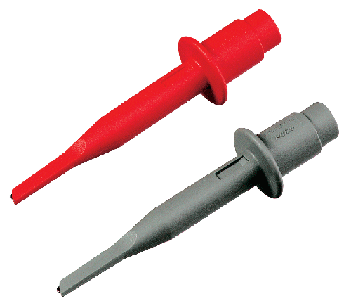 Set of two (one red, one gray) Hook Clips, designed for use with STL 120 Shielded Test Leads, VPS40 and TL75 Test Leads. Accepts wires up to 2.5mm. The contact material is made of reinforced nickel plated steel