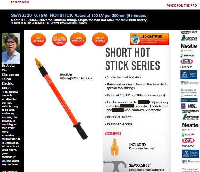 SEW3320- 0.75M SHORT HOTSTICK Rated at 100 kV per 300mm (5 minutes)