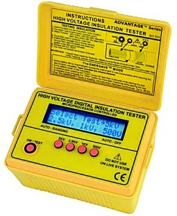 ● Microprocessor-controlled. ● Four insulation test voltages. ● Insulation resistance; auto ranging on all ranges. ● Bargraph indicates test voltage; rise and decay can be observed during tests. ● Visual and audible warning if external voltage is present. ● EnerSave™ feature to extend battery life. ● 2 Lines × 16 characters large LCD. ● Low battery consumption. ● Low battery indicator. ● Overload protection. ● Auto-off. ● Show test time duration (up to 99.9s) for easy comparison. ● EEPROM calibration. ● Built-in carry case and test leads in separate pouch.